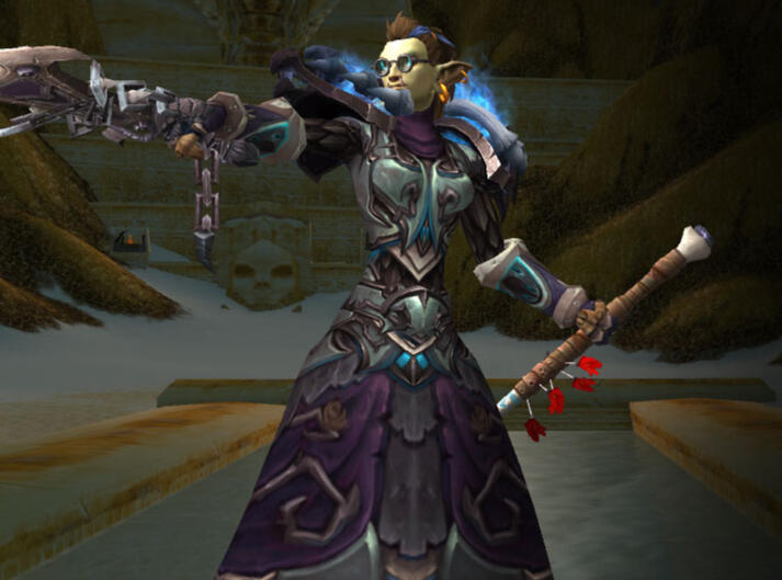 A staff etched with Zandali runes and the crest of the Shadowtusk at the top where it then forks off into two spear-like tips. Between the two floats a mystical panther head aflame with arcane energy that could almost be mistaken for fel, its eyes blazing with golden light. To draw upon its ancient arcane mastery is to wield decades of understanding and the ebb and flow of the ley lines that flow underneath the earth.Zul’Jang’s Sacrifice